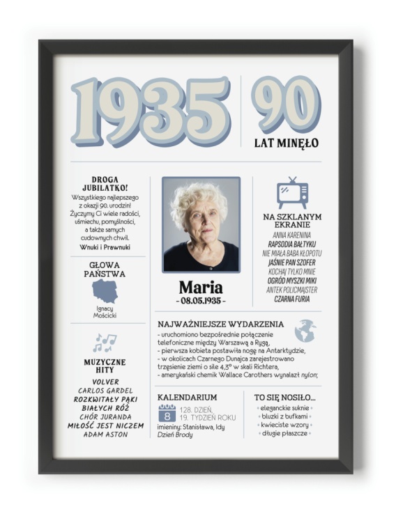 PREZENT na 90 URODZINY dziewięćdziesiątkę - PERSONALIZOWANY PLAKAT
