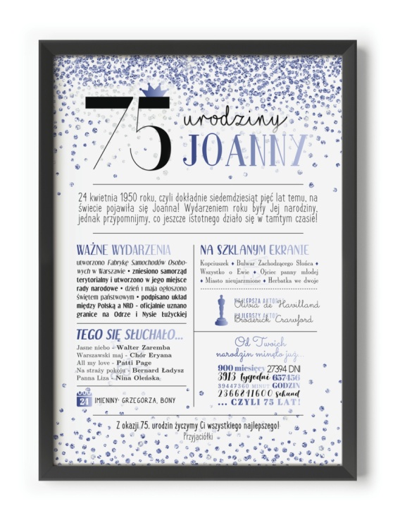 PREZENT na 75 URODZINY oryginalny PERSONALIZOWANY PLAKAT